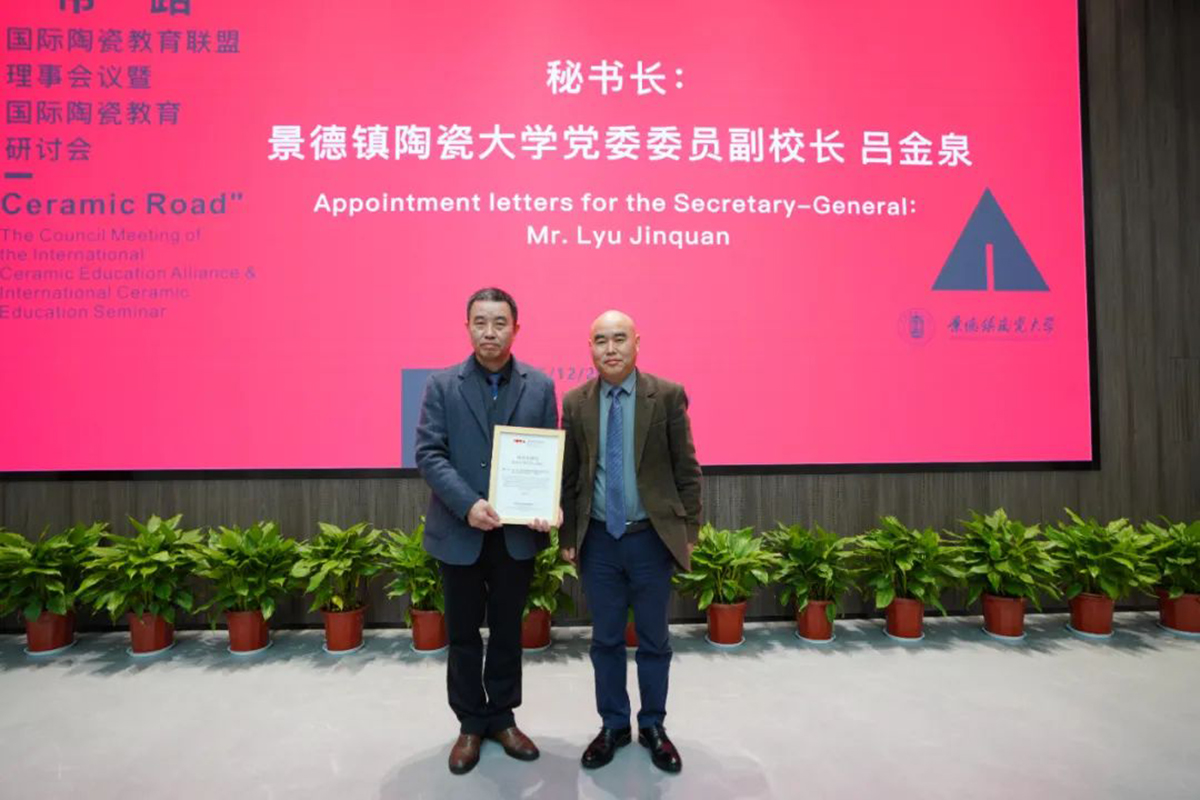 授牌儀式結(jié)束后,與會人員表決通過景德鎮(zhèn)陶瓷大學黨委委員、副校長呂金泉擔任聯(lián)盟秘書長的事項。景德鎮(zhèn)陶瓷大學黨委副書記、副校長(主持行政工作)呂品昌為呂金泉頒發(fā)秘書長證書。